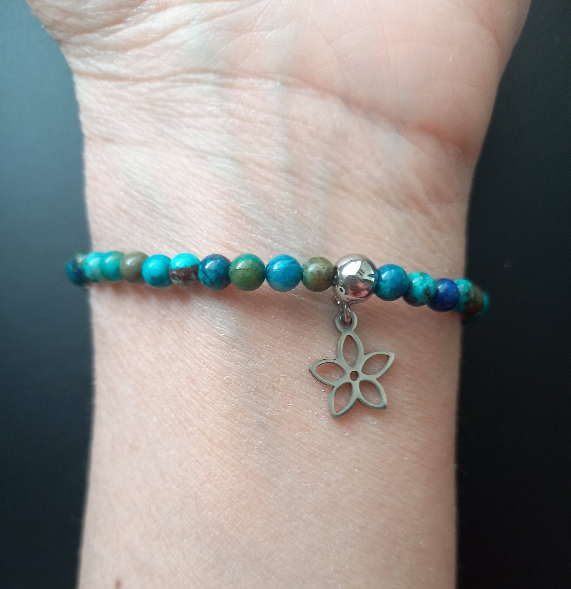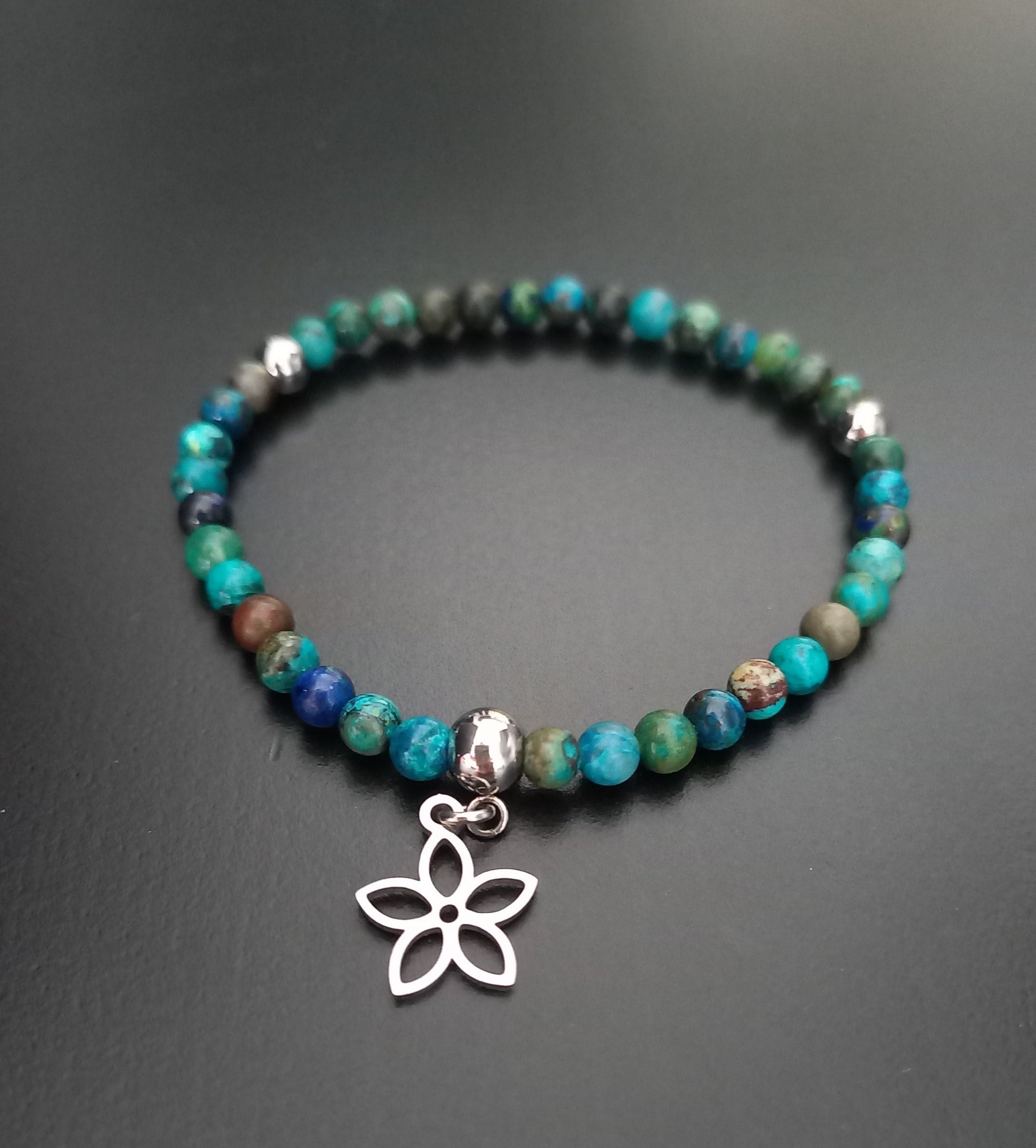 - Stone and materials: Natural peridot, glass beads and stainless steel beads