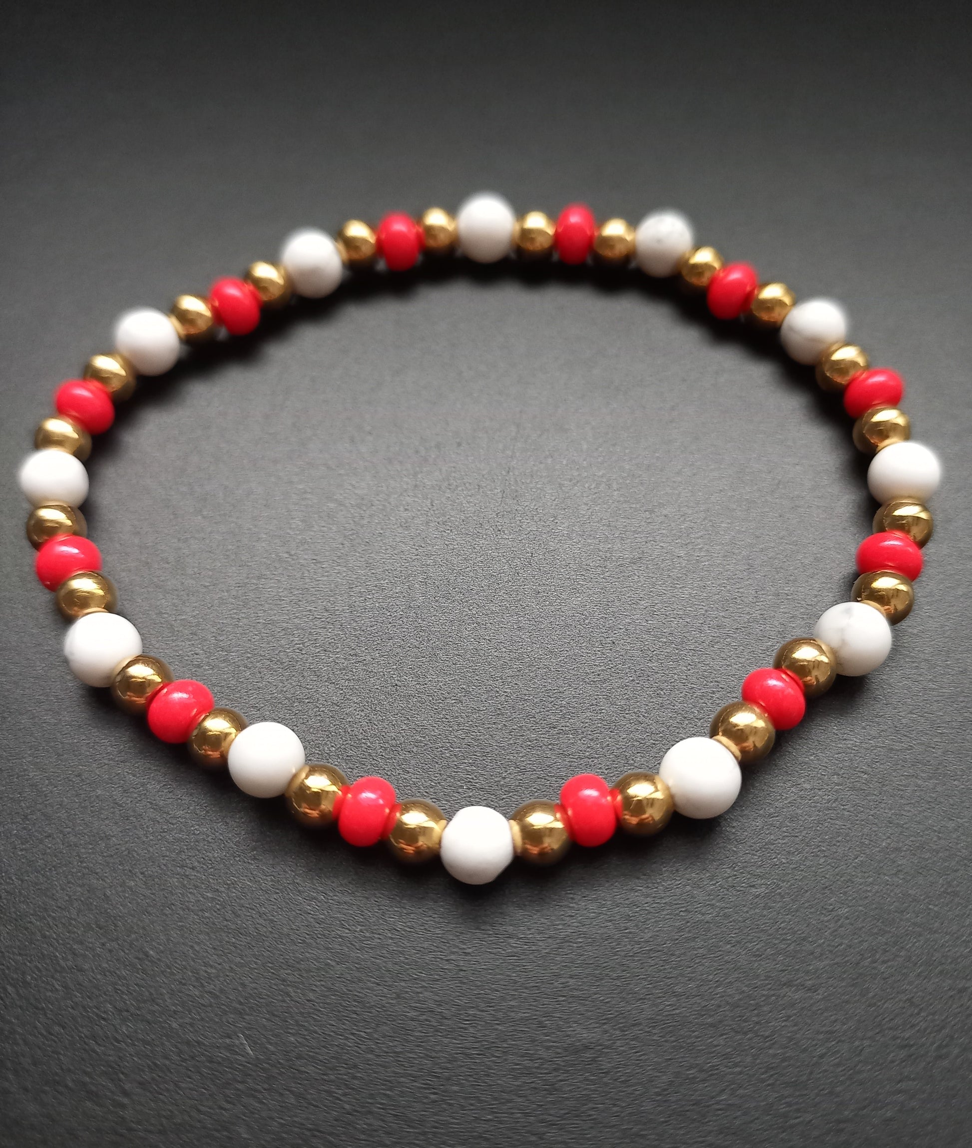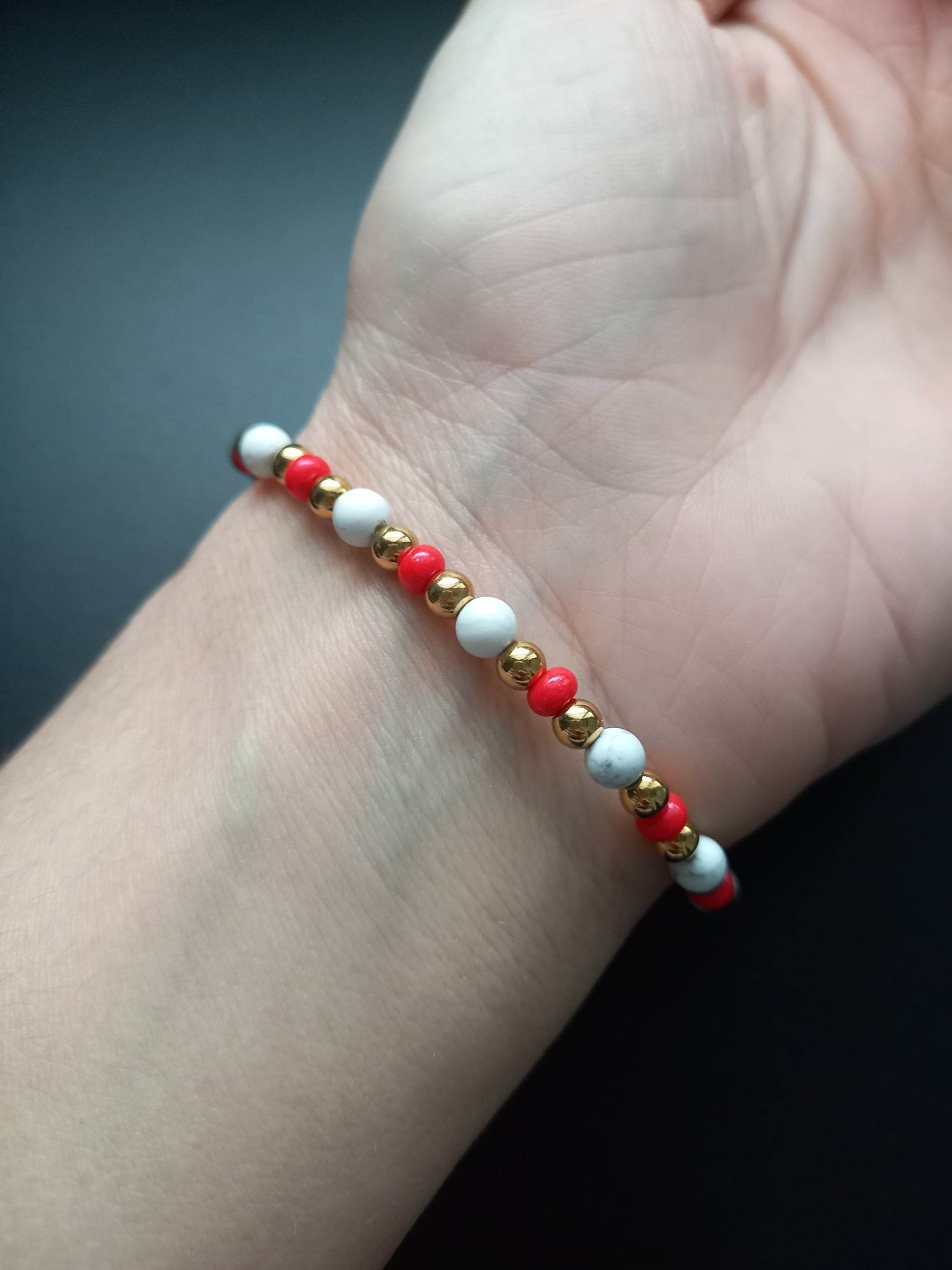 - Pierre et matériaux : Howlite naturelle, perles en verre et perles en acier inoxydable