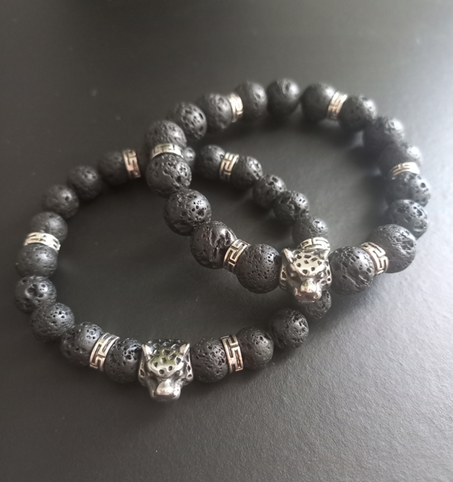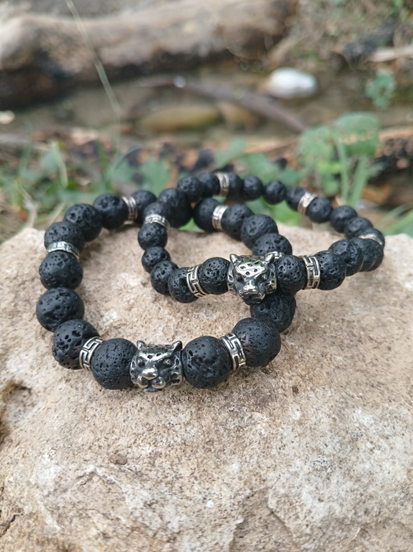 - Pierre et matériaux : Pierre de lave naturelle , perle tigre et espacements en acier inoxidable.