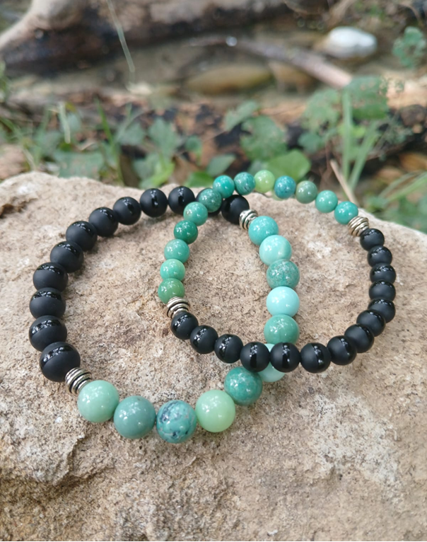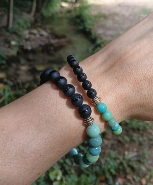 Le bracelet Talorn unit la sérénité du jade australien à l'intensité profonde de l'onyx. Un bijou brut et harmonieux pour puiser force et sagesse intérieure.