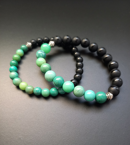 L'onyx renforce l'estime de soi et fait barrage aux pensées négatives. Le jade encourage l'honnêté, la tempérance et la tolérance.